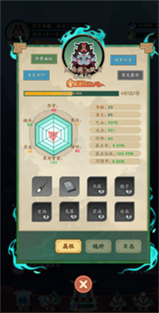 妖怪修炼谱小游戏以妖族崛起为核心的策略养成游戏,,融合了Roguelike元素,每一次修炼、战斗和随机事件都会影响角色的成长轨迹,更是有独特的妖怪进化系统、多变的随机事件和策略性的战斗玩法,让每一次游戏体验都充满未知与挑战。最终目标只有一个——让妖族成为地府最强的势力!